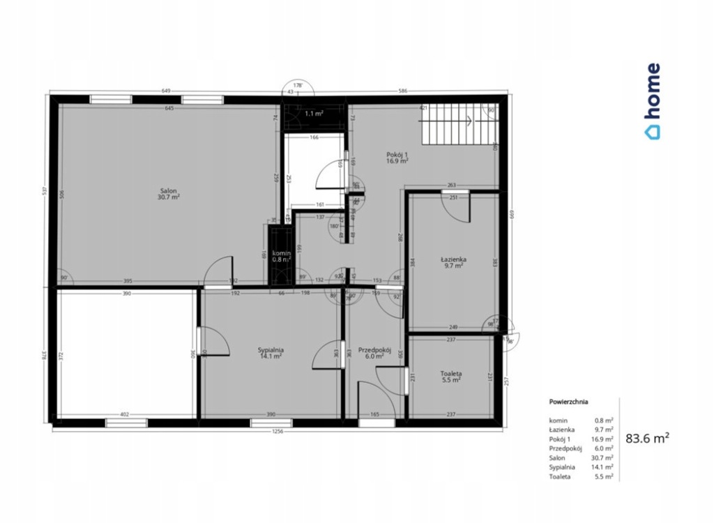 Dom w zabudowie szeregowej z pobliskim budynkiem, posiada na parterze powierzchnię 101,43 mkw. Składa się z czterech dużych niezależnych pokoi z czego jeden ma charakter przechodni, łazienki z toaletą oraz pomieszczenia gospodarczego. Poza dużym parterem, do dyspozycji przyszłego właściciela pozostanie poddasze o powierzchni równej parterowi do zagospodarowania.