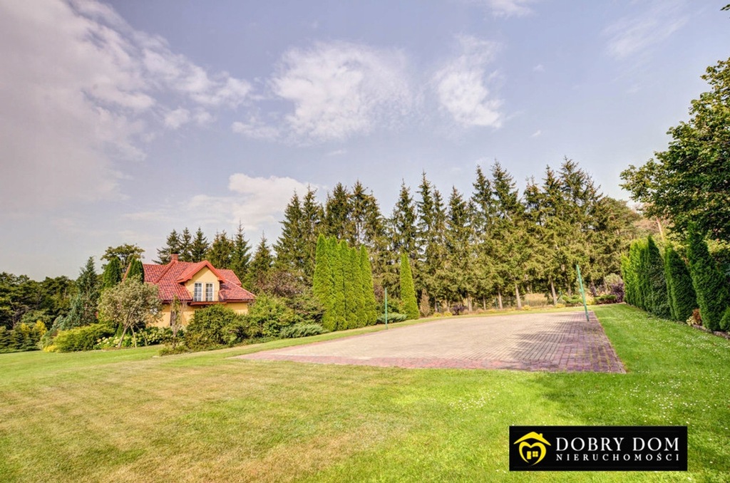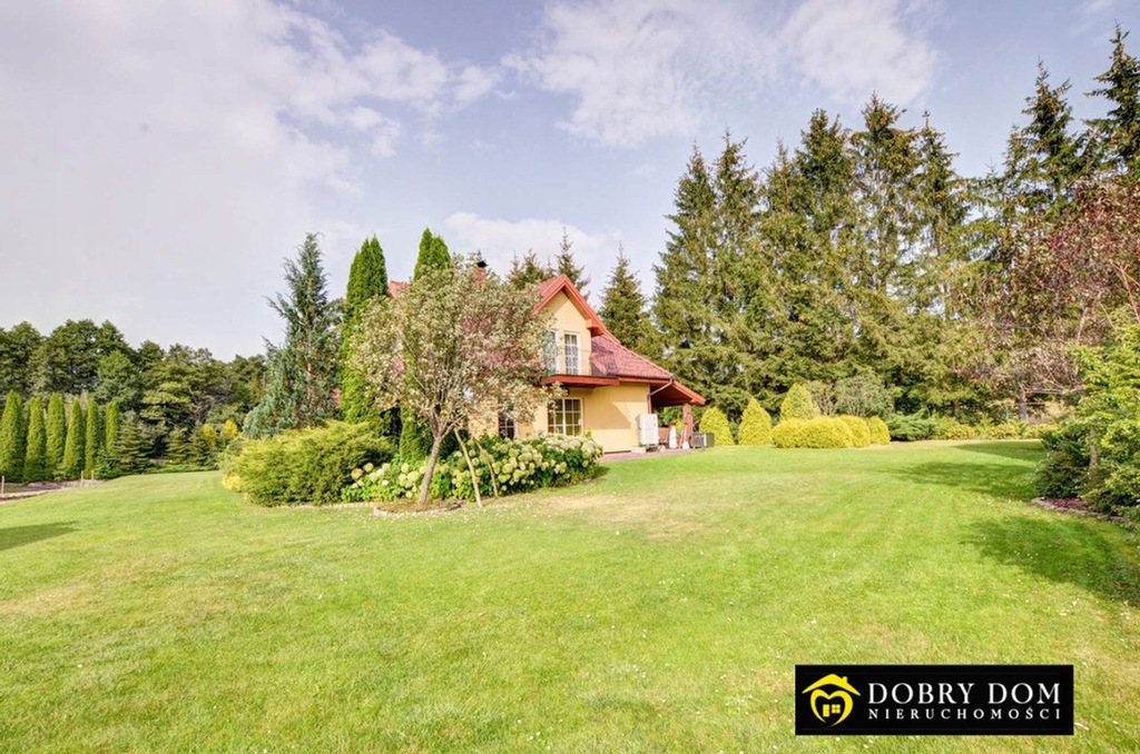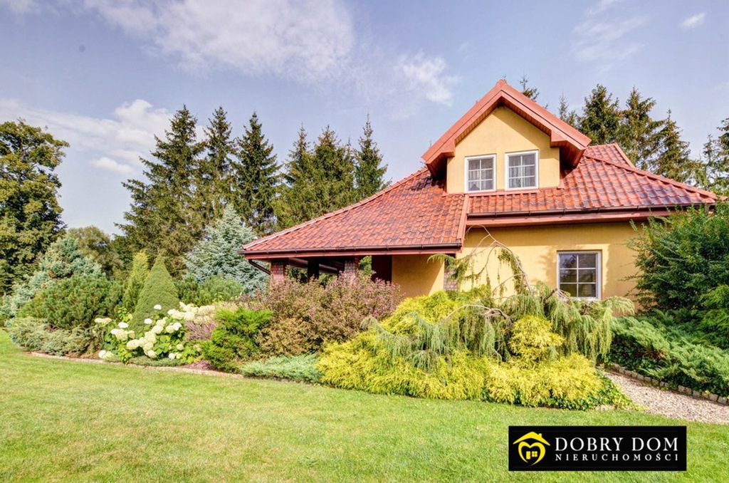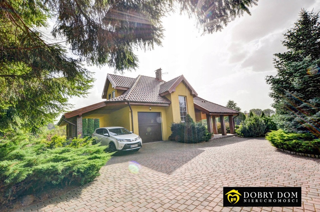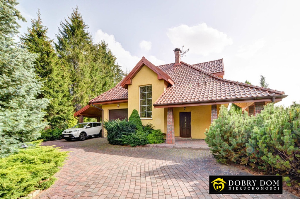 Dom o powierzchni całkowitej 139 m2, wolnostojący z garażem usytuowanym w bryle domu. Postawiony na działce o powierzchni 5437 m2. Wybudowany z cegły. Okna PCV, drzwi drewniane. Ogrzewanie: kominkowe, pompa ciepła(ogrzewanie oraz chłodzenie pomieszczeń), elektryczne, możliwość podłączenia własnego CO pod piec na pellet. Całość domu nie wymaga remontów aczkolwiek warto odświeżyć kolory ścian oraz zrobić drobny remont łazienek.