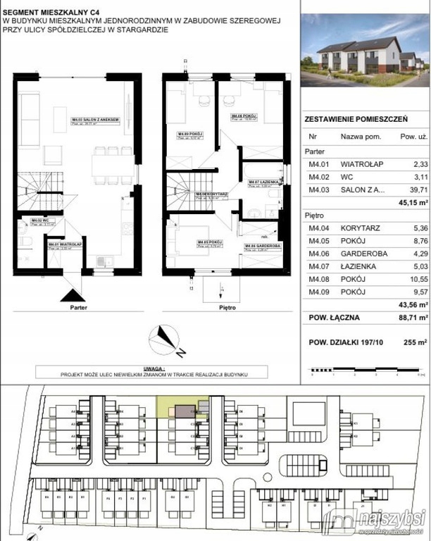 Inwestycja położona jest w cichej i spokojnej dzielnicy Stargardu, w otoczeniu zieleni, co zapewnia harmonię i relaks na co dzień. Osiedle domków w zabudowie szeregowej zostało wykonane z materiałów najwyższej jakości, gwarantując trwałość i estetykę na lata.