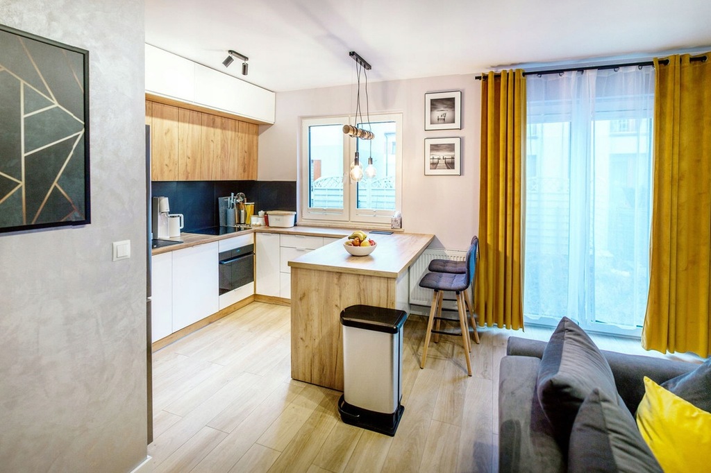 Na parterze znajduje się duża otwarta przestrzeń w której znajduje się Salon z aneksem kuchennym z wyjściem na 50 m2 ogródek.