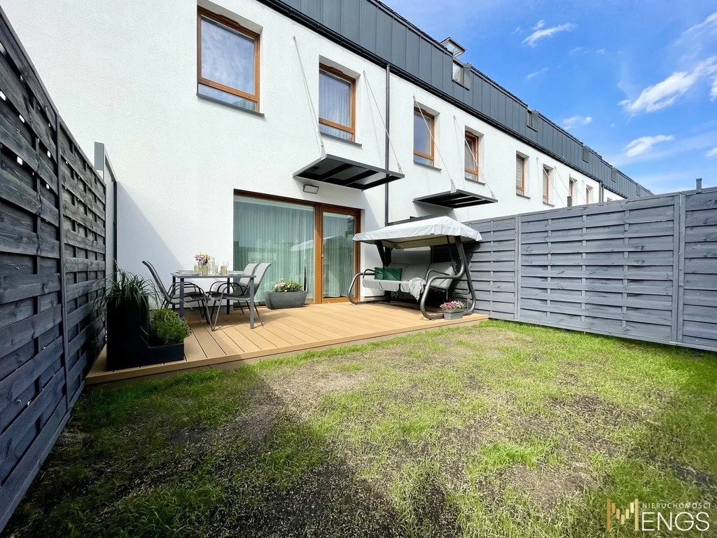 Na sprzedaż 112 metrowy segment z ogródkiem, urządzony przez architekta i wyposażony w wysokim standardzie.
