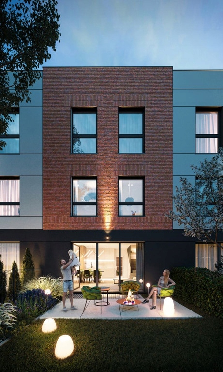 Nowy projekt architektoniczny zakładający budowę 7 trzypoziomowych domów w zabudowie szeregowej (o pełnych kondygnacjach).