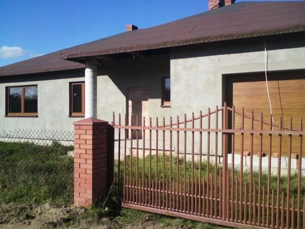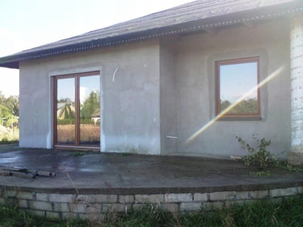 Dom parterowy w stanie surowym zamkniętym. Ocieplony steropianem 10cm. Okna wysokostandardowe w kolorze drewna. Salon połączony z jadalnią. Na parterze salon, kuchnia, jadalnia, WC, łazienka oraz dwa pokoje. Duży przedpokój z miejscem na szafę wnękową oraz hall. Poddasze o pow. 100m2. użytkowe nie wykończone. Okolica bardzo atrakcyjna cicho, zielono, niedaleko do PKS i MZK. W pobliżu szkoła.