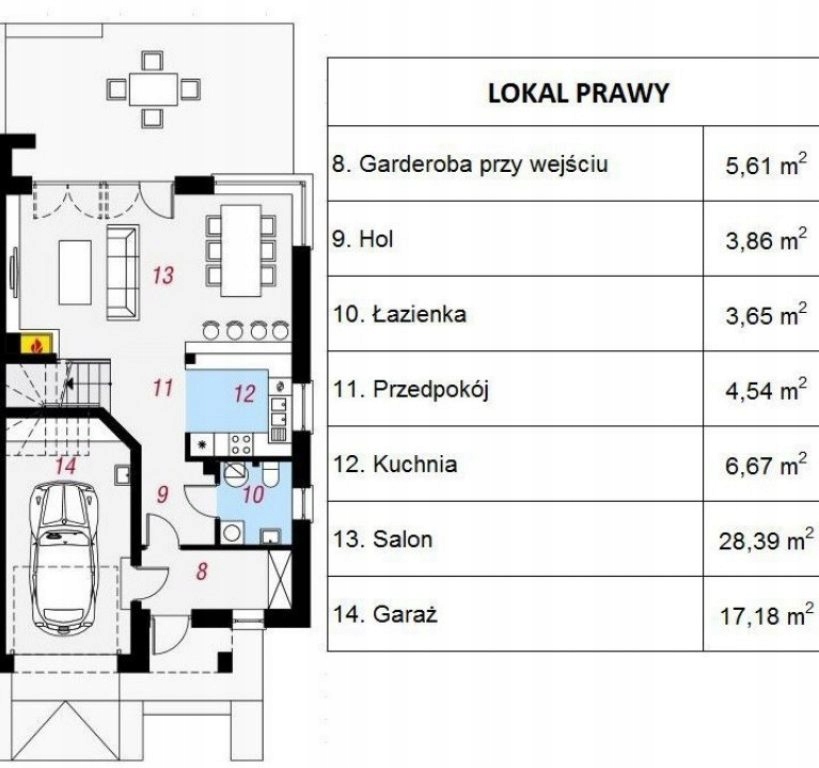 - Garaż wraz z dodatkowym miejscem postojowym.