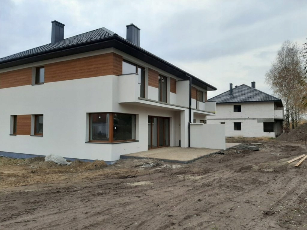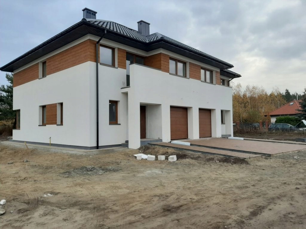 Piękny dom na niewielkim osiedlu składającym się z 20 domów w zabudowie bliźniaczej. Teren osiedla jest ogrodzony, z możliwością wejścia przez furtkę oraz wjazdu przez otwieraną automatycznie bramę.