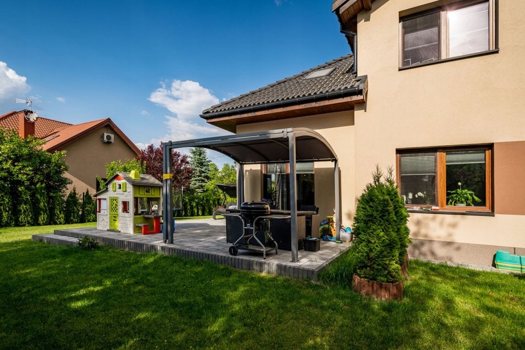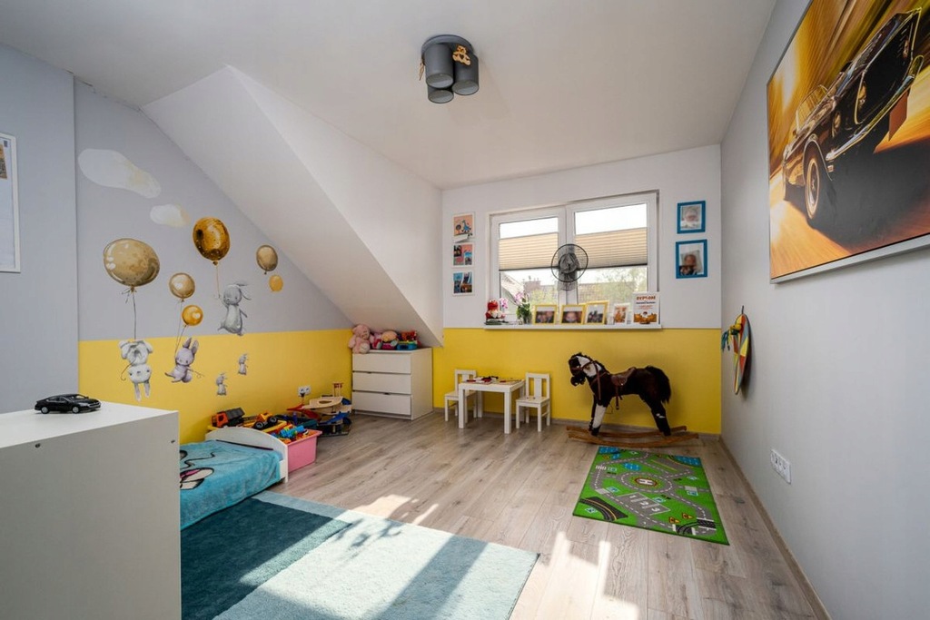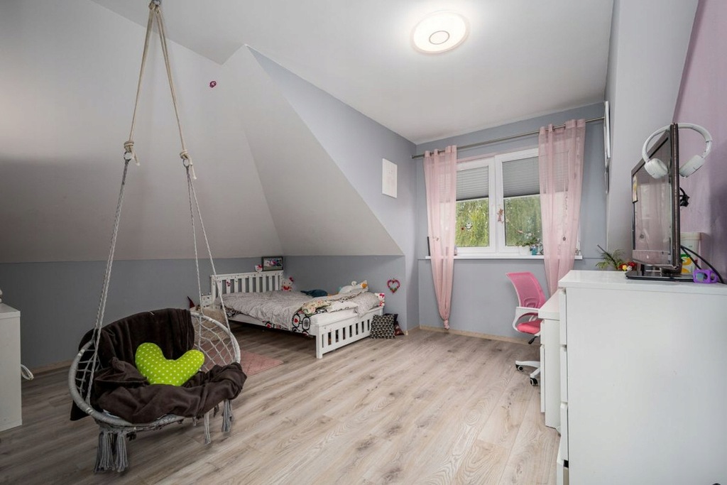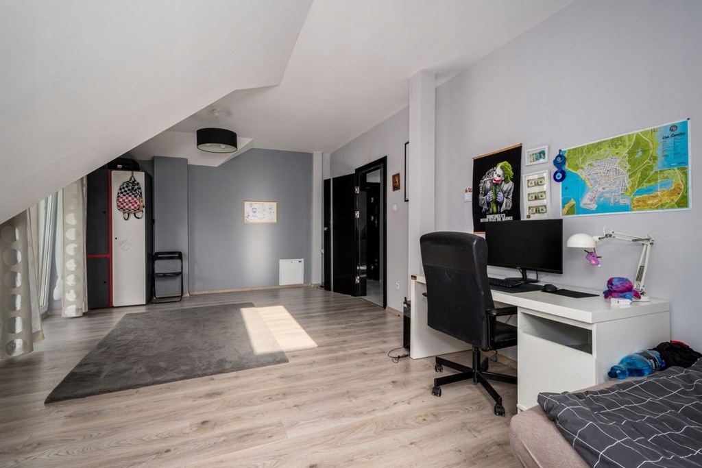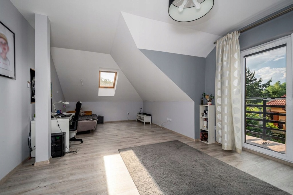 Dom oferuje dodatkowo dostęp do poddasza o powierzchni aż 56 m² oraz garażu jednostanowiskowego z kotłownią i piecem gazowym,