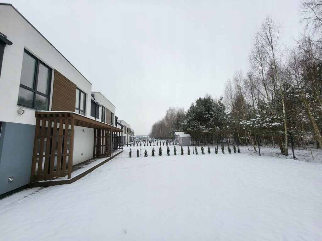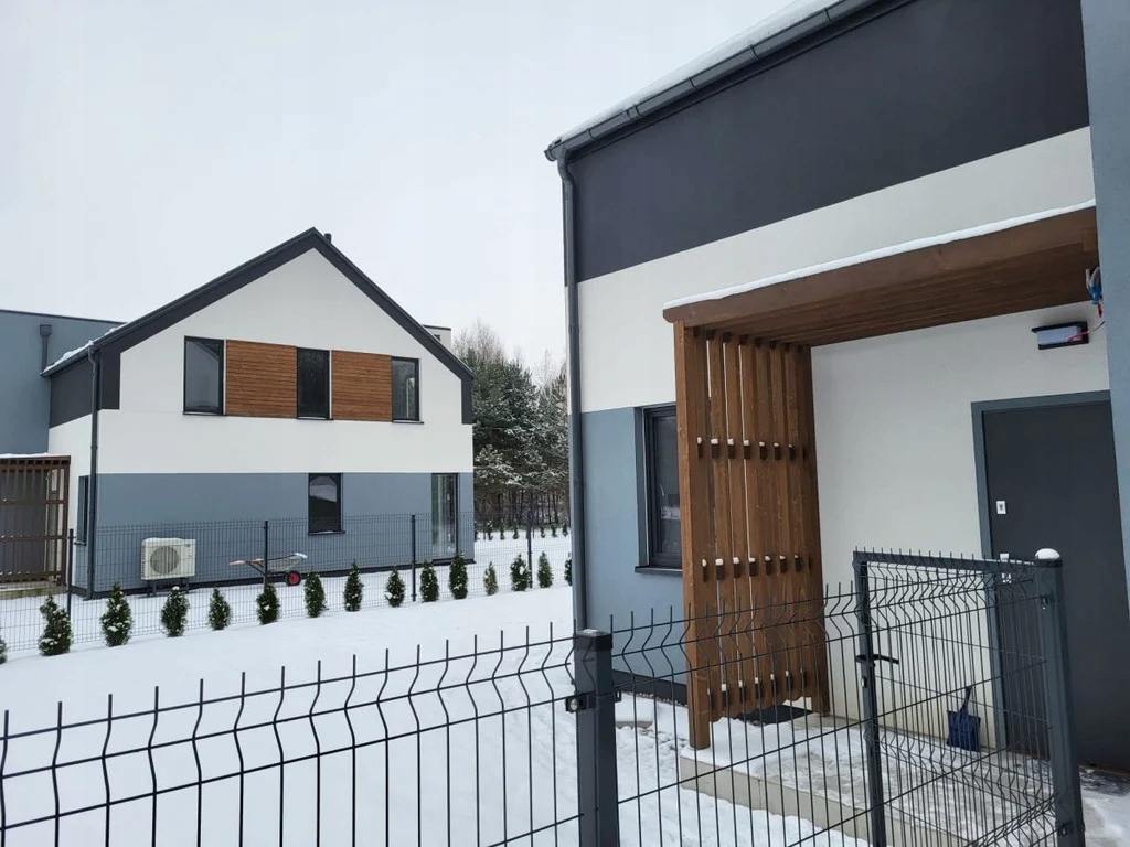 Istniejący, oddany do użytkowania, ekologiczny dom w zabudowie bliźniaczej (wolnostojący dwulokalowy) o powierzchni 146 m2 na działce 500 m2.