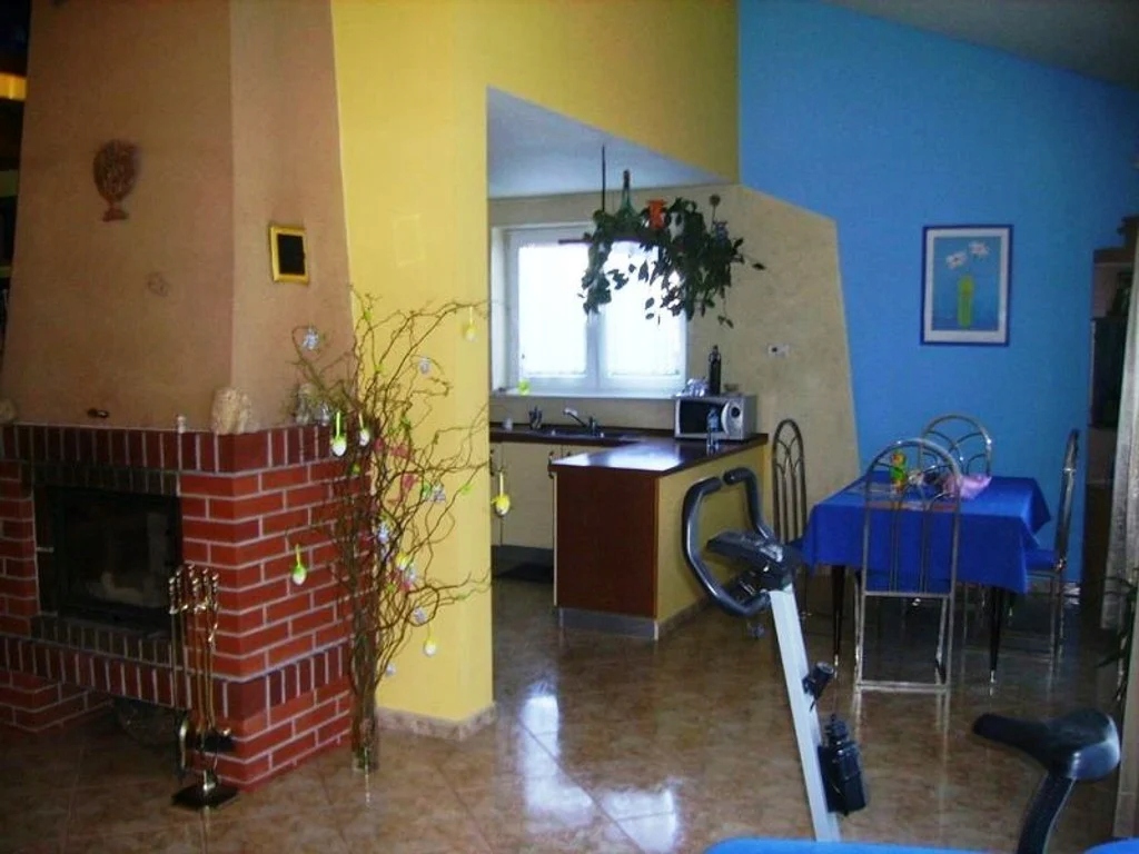 Dom na sprzedaż pod Warszawą w Starej Iwicznej koło Piaseczna, wolnostojący, ok. 1500m od ulicy Puławskiej. W cichym miejscu, wokół zabudowa jednorodzinna. Wykonany z cegły, w ścianie styropian, okna plastikowe, pokryty blachą dachówkową, oddany w 1999 roku. Parter: salon z kominkiem z wkładem grzewczym (25.7m2) otwarty z jadalnią i kuchnią ((18,2m2), na podłodze terakota, obok pokoik (8,5m2 panele) i łazienka z prysznicem (4.8m2). Garaż (14,6m2), pomieszczenie gospodarcze (12,8m2, wys. 2,3m) możliwość zrobienia pokoju, oraz kotłownia (spiżarnia) 7,3m2. Piętro: trzy pokoje 10,7m2, 9,6m2 i 13,3m2 do tego pokoju przylega poddasze niskie idealne na sypialnie (9,4m2). Łazienka 8,5m2 - do zrobienia. W dwóch pokojach wykładzina (raczej do wymiany), w trzecim panele. Media: prąd, gaz ziemny, woda i kanalizacja miejska, telefon. Działka zagospodarowana, ładny trawnik, wokół obsadzona tujami dającymi skuteczną zasłonę. Ogrodzona z bramą automatyczną, przed domem kostka ok. 90m2.