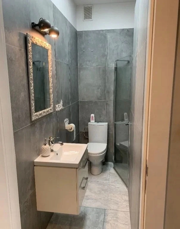 - łazienka (2,77m2), w której znajduje się toaleta, lustro, umywalka z szafką oraz kabina prysznicowa