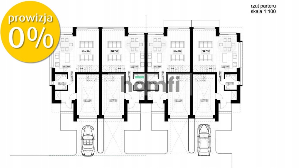 Każdy z powstających lokali posiada własny garaż oraz miejsce postojowe przed budynkiem. Parter składa się z salonu, kuchni jadalni oraz łazienki. Na piętrze zaprojektowano 3 sypialnie i dwie łazienki. Główna sypialnia ma do dyspozycji własną łazienkę oraz garderobę i przestronny taras.