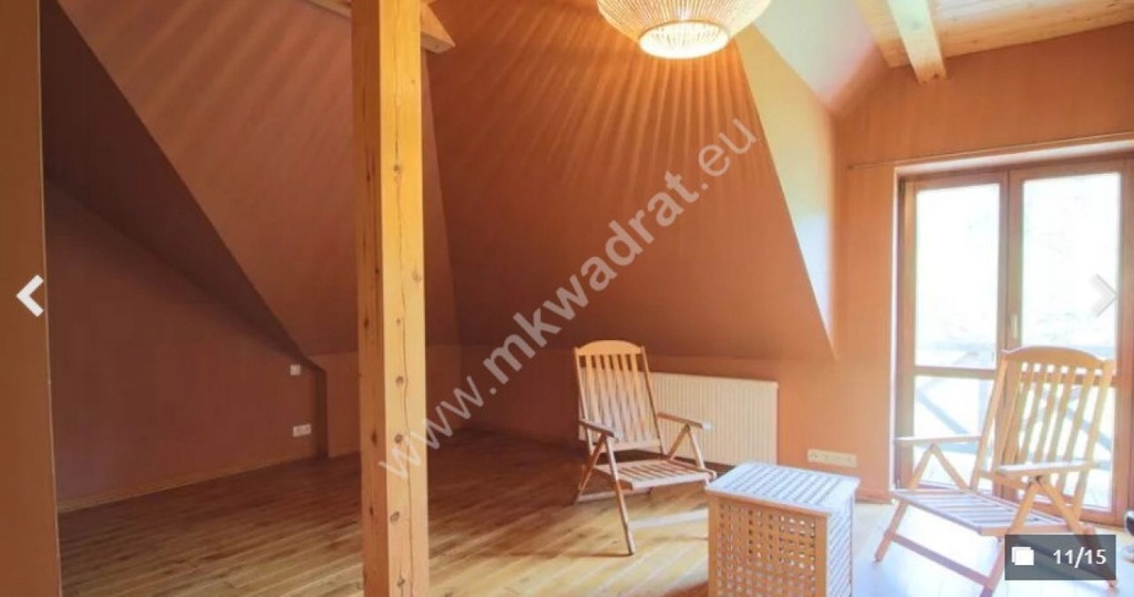 Stan budynku: Bardzo dobry; Materiał: Mieszany; Dach: Drewno; Poddasze użytkowe; Typ okien: Drewniane (nowy typ); Drzwi wejściowe: Drewniane, Przeciwwłamaniowe; Ciepła woda: Pompa ciepła; Rodzaj ogrzewania: Kominkowe, Pompa ciepła, Podłogowe;