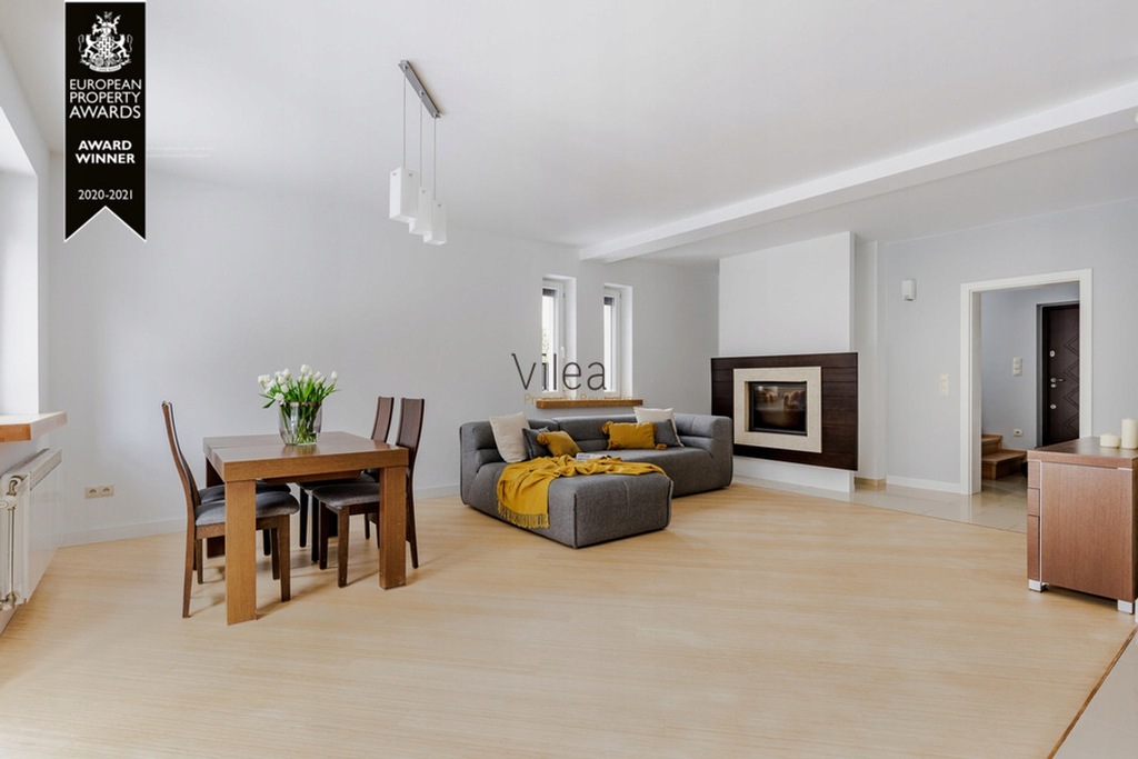 - A bright living room with large windows, a separate dining area and a place to relax, where we can read our favorite reading by the fireplace