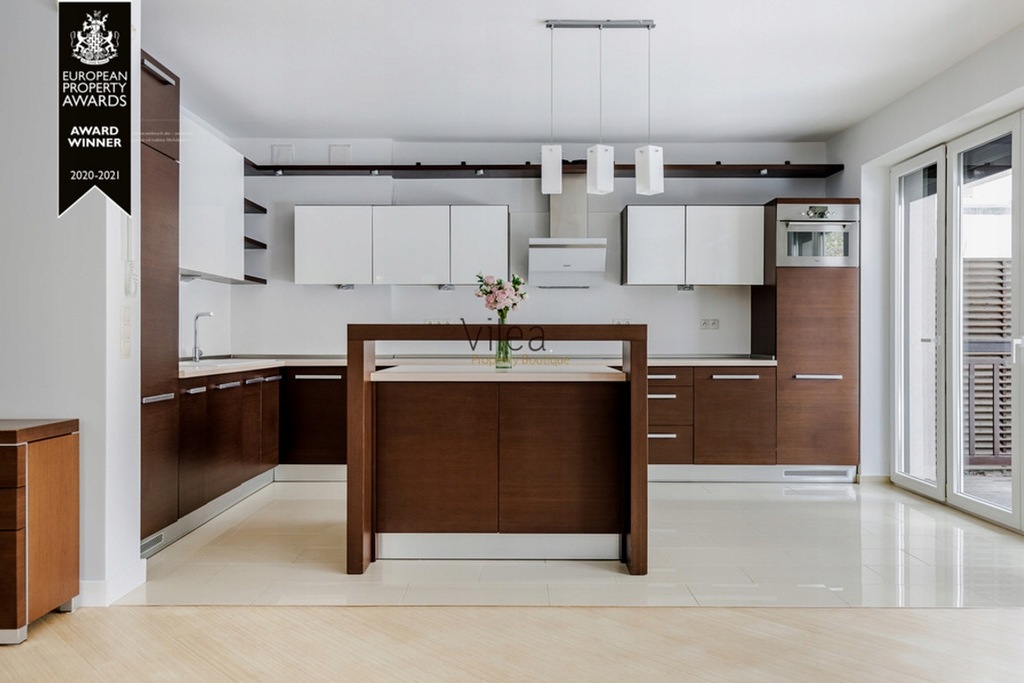 – Przestronna otwarta kuchnia, w pełni wyposażona w dobrej jakości sprzęt AGD z wyjściem do ogrodu