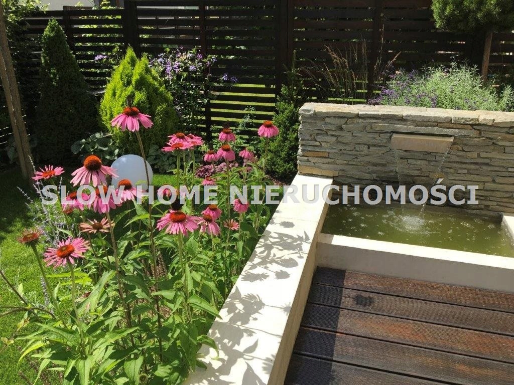 Dom - segment z przepięknym bardzo zadbanym ogrodem zaprojektowanym przez profesjonalnego architekta krajobrazu, otoczony innymi ogrodami i zabudową jednorodzinną. Nieruchomość została wybudowana w 2009 i wykończona z wysokiej jakości materiałów. Dom ma ok. 140 m2 powierzchni użytkowej plus ok. 30 m2 poddasza, które można zagospodarować na dodatkowy pokój.