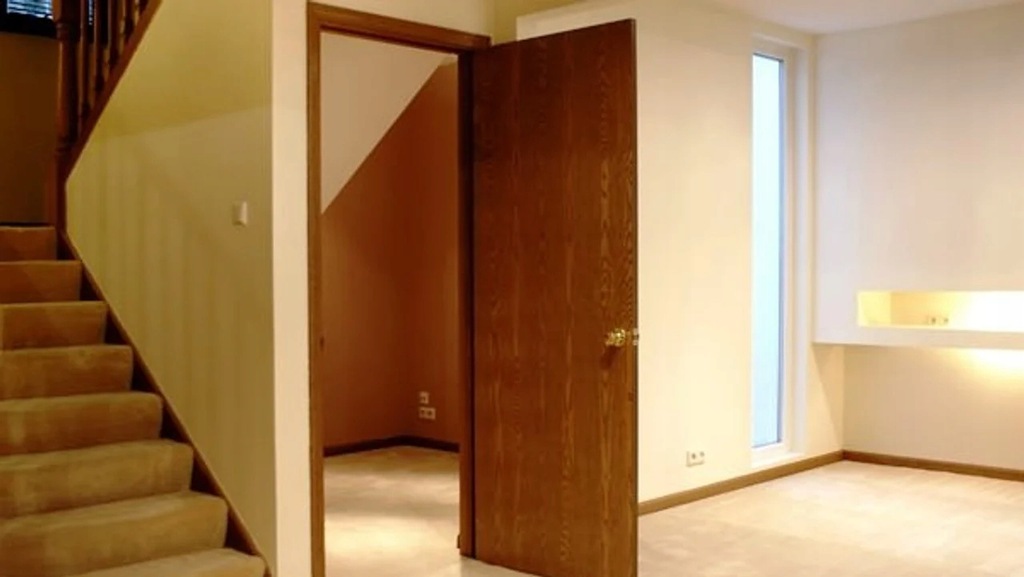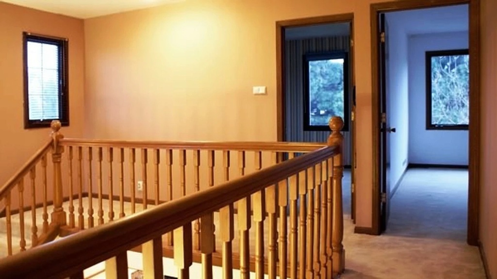 Salon połączony z jadalnią. Na pierwszym piętrze 3 sypialnie oraz łazienka. Poddasze nieużytkowe ze schodami składanymi (ok 40 m/kw do wykorzystania, ze względu na spadzisty dach)
