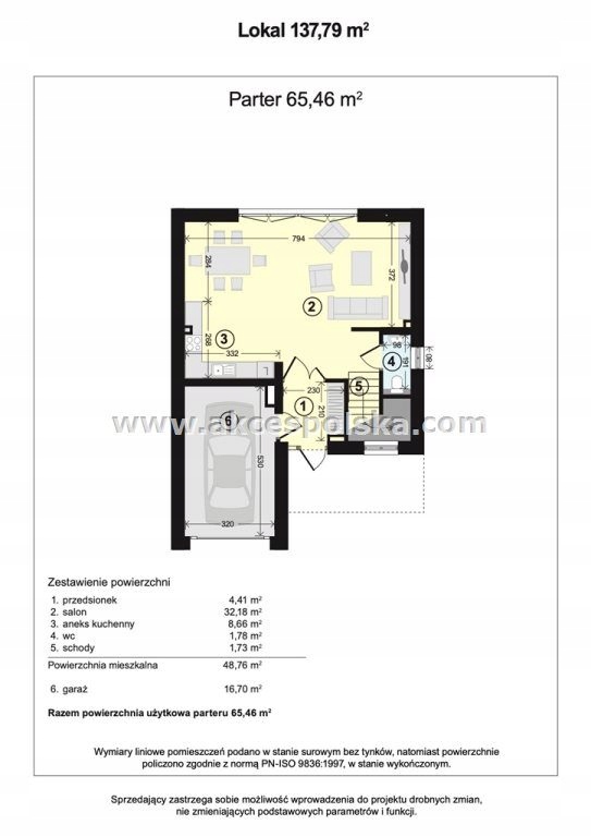 Zestawienie powierzchni: zgodnie z rzutami na dołączonych planach