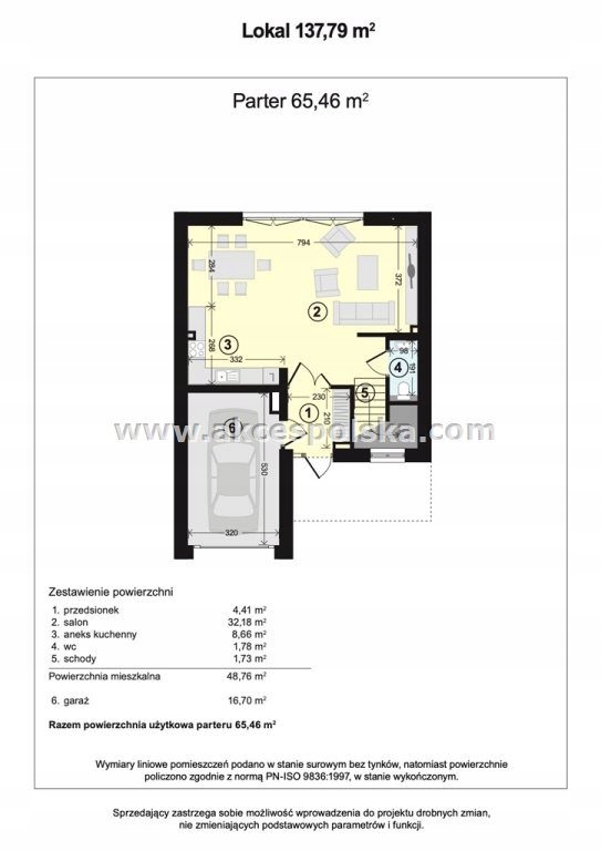 Zestawienie powierzchni: zgodnie z rzutami na dołączonych planach