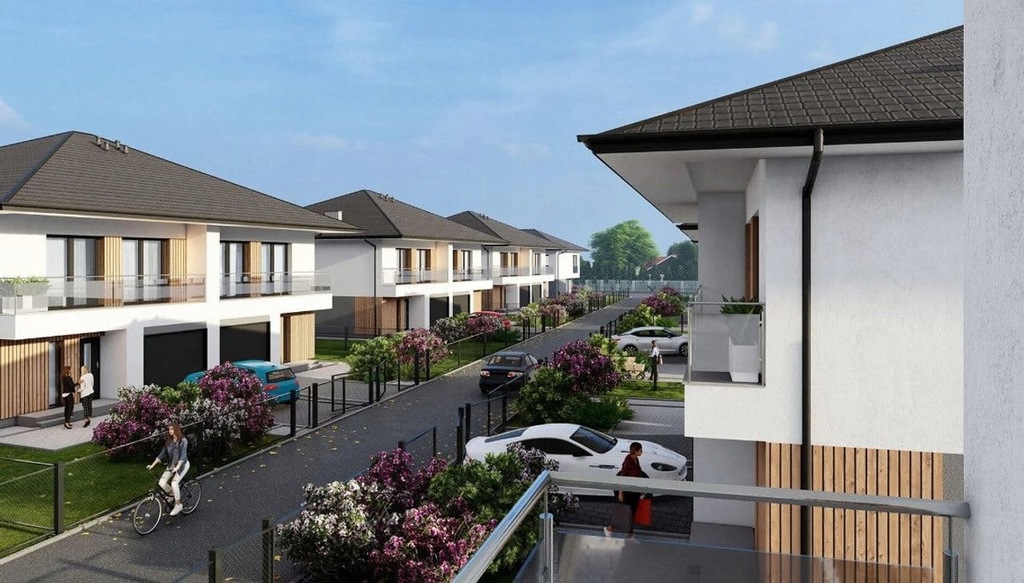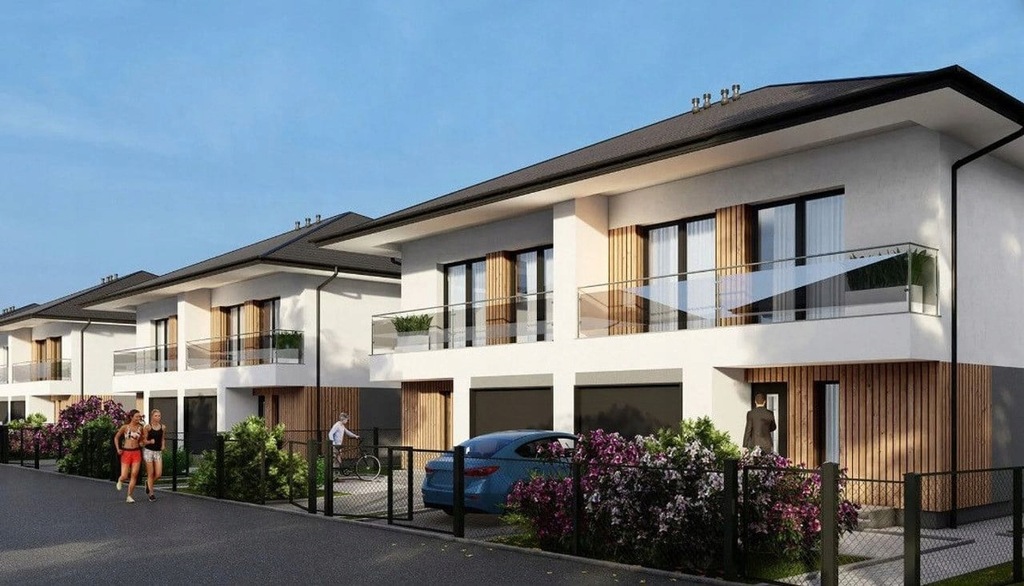 Piękne domy na osiedlu składającym się z 40 domów w zabudowie bliźniaczej, położonej w Bobrowcu - tuż przy granicy z Piasecznem.