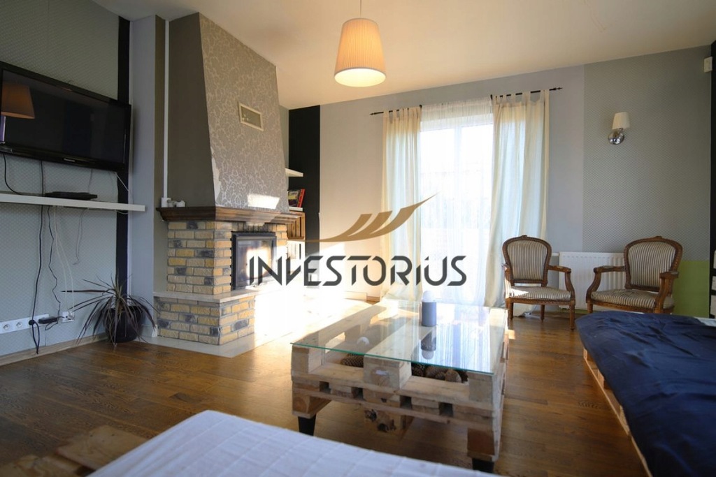 - przestronny, wyposażony w kominek salon z aneksem kuchennym, wydzieloną częścią jadalnianą i wyjściem na taras przez przesuwne drzwi balkonowe,