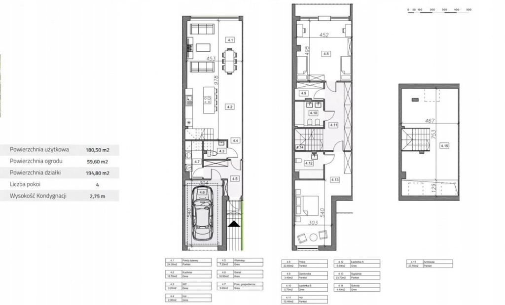 Każdy segment będzie miał własny ogródek, garaż i dodatkowe miejsce postojowe przed nim.