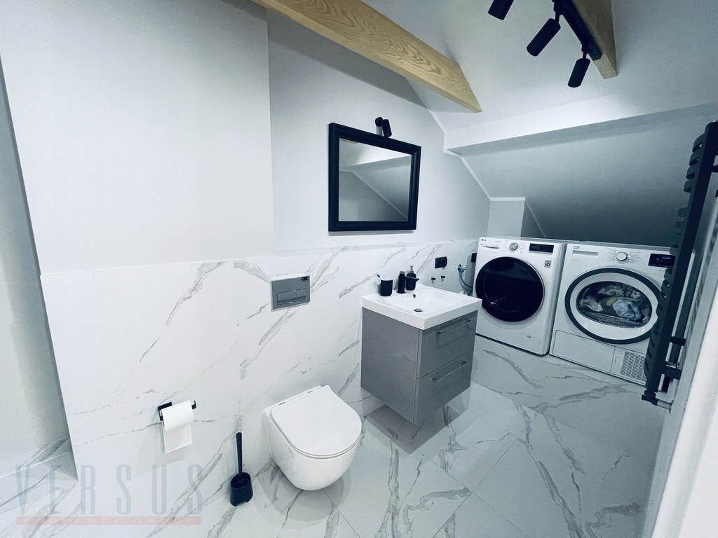 Poddasze ok. 60 m2 (pokój, schowek, wc z pralnio-suszarnią).