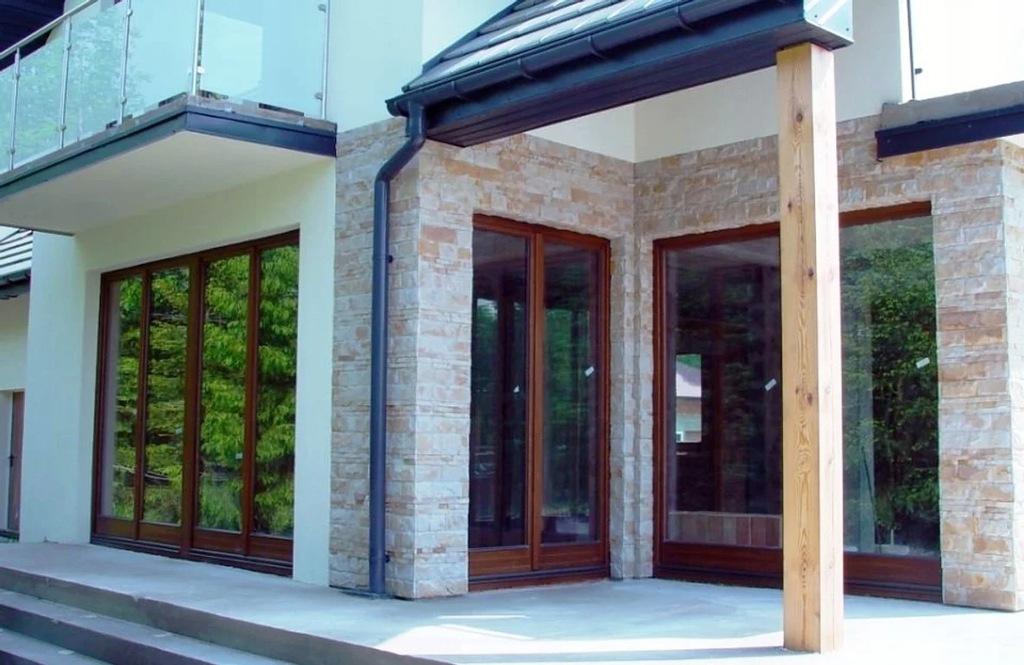 Wyjątkowy charakter tej inwestycji nadają lekkie, proste bryły budynku, piękne, duże drewniane okna wpuszczające dużo światła w połączeniu z jasną, ciepłą elewacją z akcentami kamienia naturalnego.