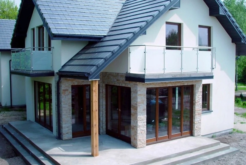 Na wysoki standard wykończenia składają się najwyższej klasy materiały t.j.: pełnoceramiczna cegła, pełnoceramiczna, płaska dachówka, okna z litej sosny, drzwi wejściowe Deccor Hormann, drzwi garażowe Hormann z wewnętrzną automatyką, barierki balkonowe z bezpiecznego szkła.