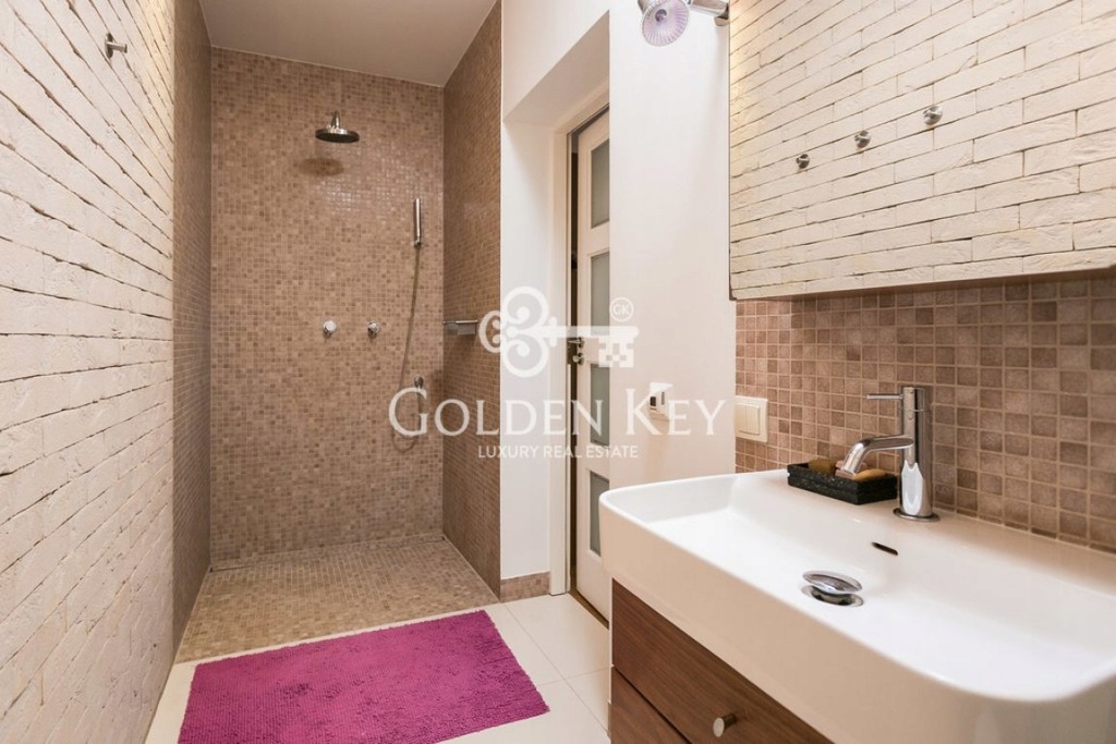 * dużą, jasną i przestrzenną łazienką z wolno stojącą wanna i wygodnym stanowiskiem do makijażu dla Pani domu; łazienka jest łącznikiem pomiędzy dwoma sypialniami;