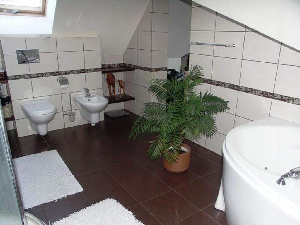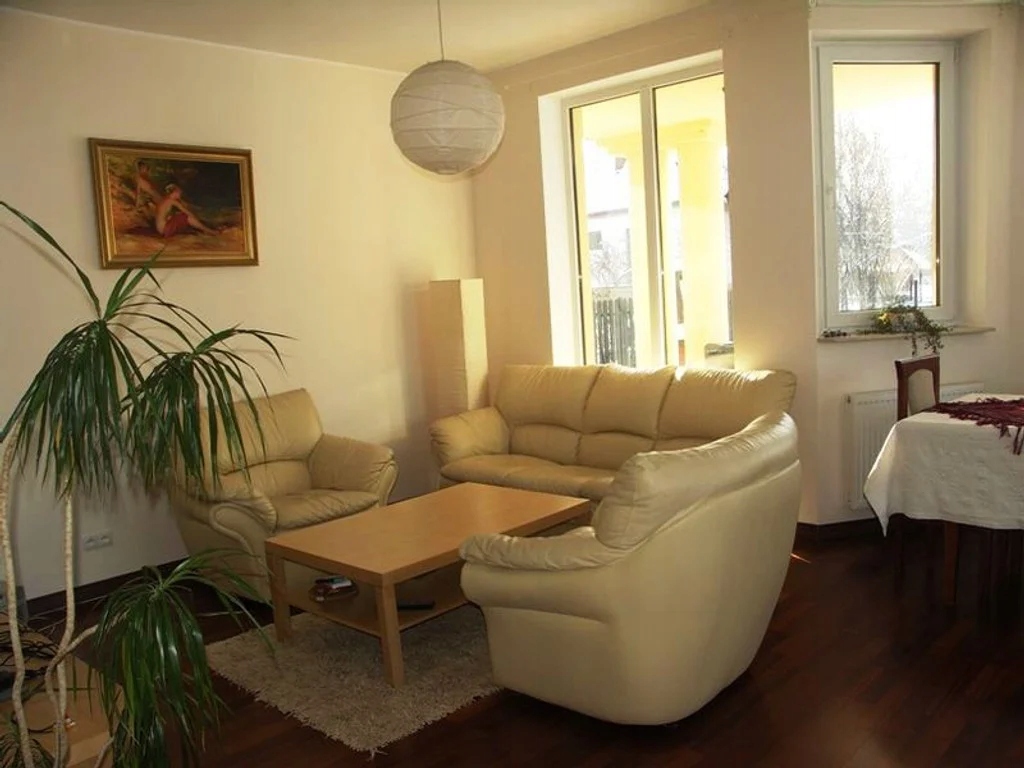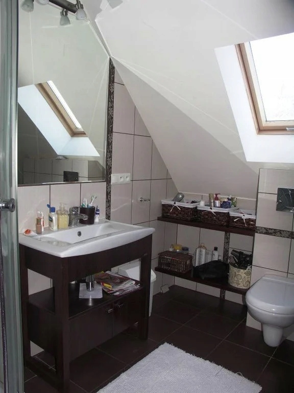 Dom o powierzchni 185 mkw na działce 550 mkw w Zalesiu Górnym. Na dolnym poziomie znajduje sie salon połaczony z jadalnią i połodkrytą kuchnia, gabinet, wc, pom gospodrcze, garaż.Z salonu wyjscie do ogrodu przez duzy taras. Górny poziom stanowią 3 sypialnie w tym dwie z balkonem, duza łazienka z wanna z hydromasażem prysznicem, pralnia. Dom został zbudowany z bardzo dobrych materiałów, sciany z porotermu ocieplone 12 cm styropianem (połączony z druga połowa blizniaka garazem ), tynk akrylowy, dachówka betonowa. Wszedzie gdzie zostały połozene płytki znajduje sie ogrzewanie podłogowe. Na podłodze : dolny poziom deska barlinecka i gres hiszpanski, górny poziom - panele. Piec gazowy firmy Junkers. Dom posiada alternatywne ogrzewanie z pieca kaflowego. 3 strefowa instalacja alarmowa włacznie z zewnetrzna, czujki nie reaguja na zwierzeta. Brama garażowa otwierana pilotem. Dom znajduje sie w bliskiej odległosci od szkoły,gimnazjum(najlepsze szkoły w powiecie piaseczynskim) , przedszkoli, sklepów, kościola, restauracji, lasu. Istnieje mozliwość kupna drugiej połowy blizniaka w podobnej cenie i rostawie pomieszczeń.