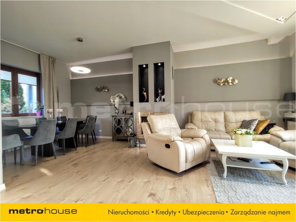 Posiadłość znajduje się w małym, kameralnym osiedlu zamkniętym na obrzeżach Piaseczna. Duży środkowy dom (186,5 m 2 w tym garaż) o zabudowie szeregowej z 2009. W tym roku został generalnie wyremontowany. Wszędzie wymieniono podłogi, całkowicie kuchnię (płyta indukcyjna, szafki drewniane). Kompletnie zmodernizowano wszystkie 3 łazienki. Wykonano podwieszane i podświetlane sufity i nowe nowoczesne schody .Aby dopełnić komfortu życia zainstalowano kominek, klimatyzację, markizy, system alarmowi i wideofon. Ten wysokiej jakości dom składa się z przestronnego salonu ( 38 m 2), otwartej kuchni z oknem, oraz na piętrze z 4 sypialni. Sypialnia małżeńska posiada oddzielną łazienkę i garderobę. Istnieje możliwość zagospodarowania strychu. Jedną z zalet jest garaż w bryle budynku oraz 3 miejsca postojowe przed posesją. Natomiast z tyłu znajduje się pięknie zagospodarowany ogródek z automatycznym podlewaniem i czujnikiem deszczu. Zadaszony 50 m taras sprzyja odpoczynkowi i nic nie robieniu.