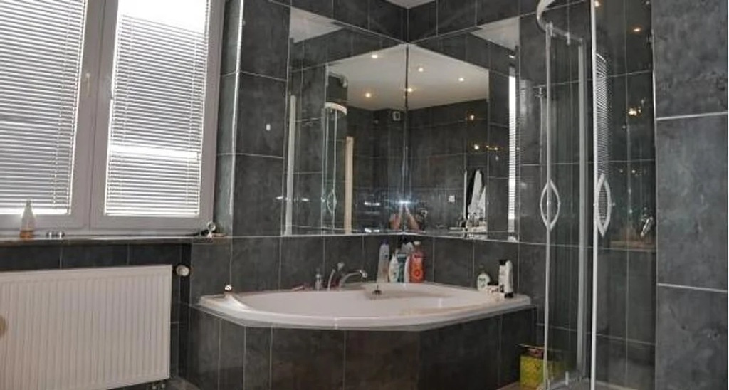 I piętro: holl, garderoba, dwa pokoje dziecięce, łazienka dziecięca z wanną, duża sypialnia z szafami wnękowymi i z wejściem do łazienki ( wanna i prysznic)