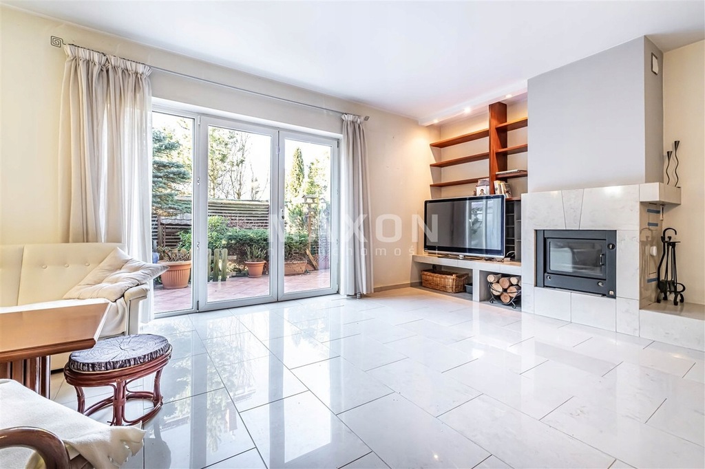 - przestronny salon z wyjściem do ogródka; na podłodze terakota;