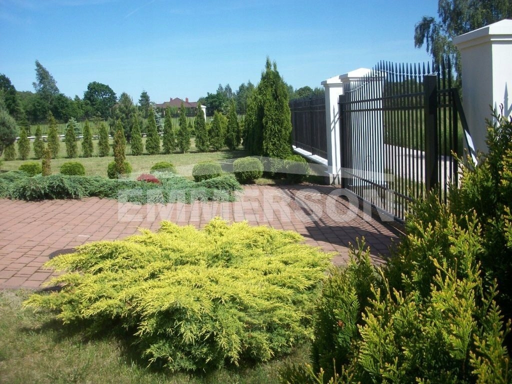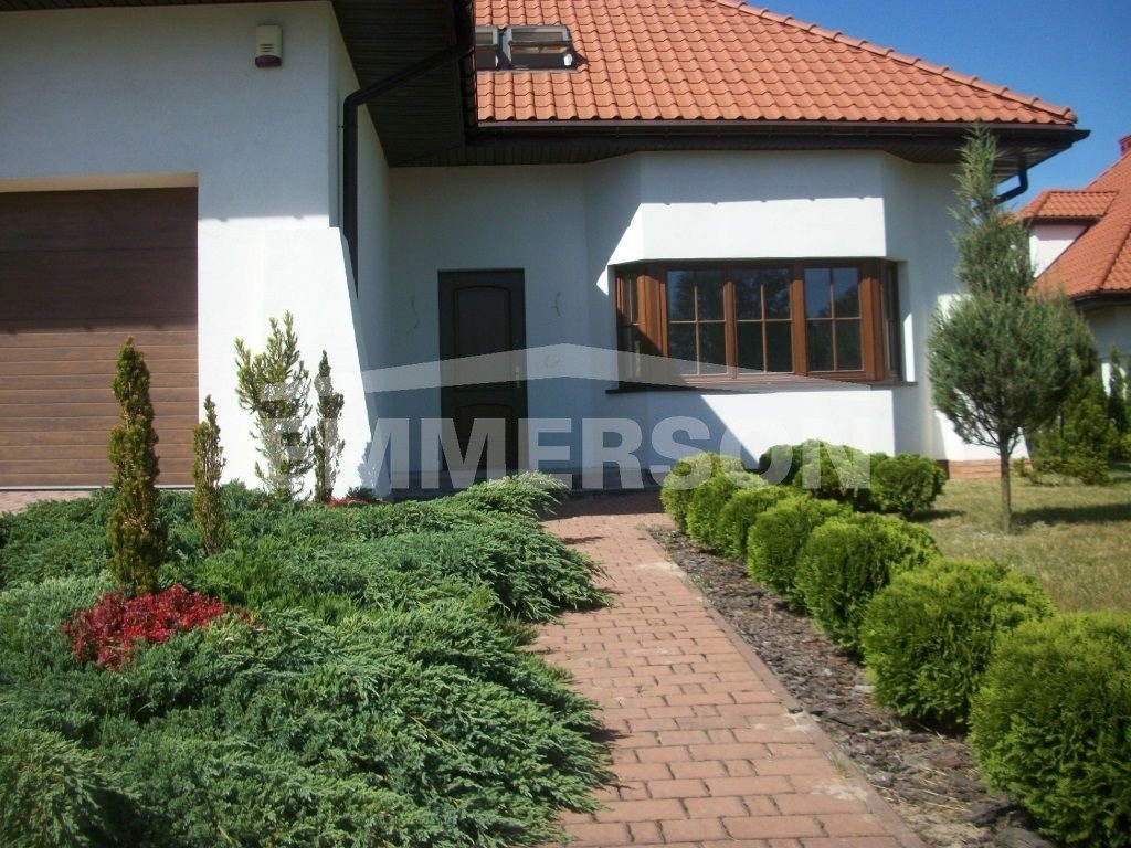 Dom znajduję się na pięknie zagospodarowanej działce z nasadzeniami i wieloletnim drzewostanem.