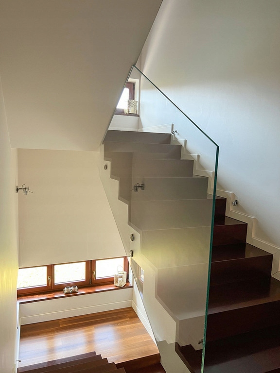 Prezentowany lokal składa się z 2 kondygnacji, do których prowadzi nas hall zabudowany szafami oraz prywatna klatka schodowa.
