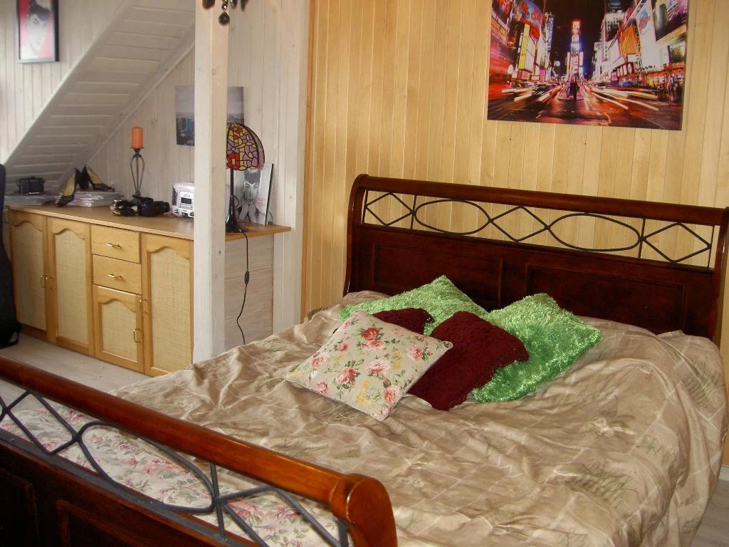Poddasze ( wykończone ) duży, bardzo sloneczny pokój o pow. 32,5 m2 ( okna dachowe ) z niewielką łazienką z prysznicem.