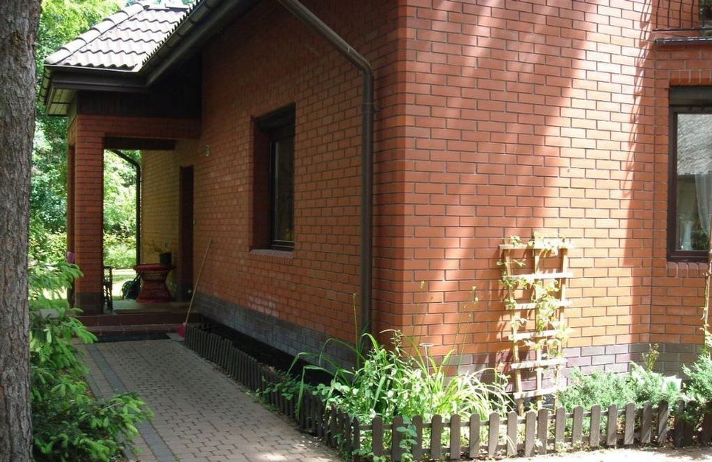 fundamentach) z cegły klinkierowej , ciepły i przytulny. Parter ma około 80 m2 z dużym pokojem