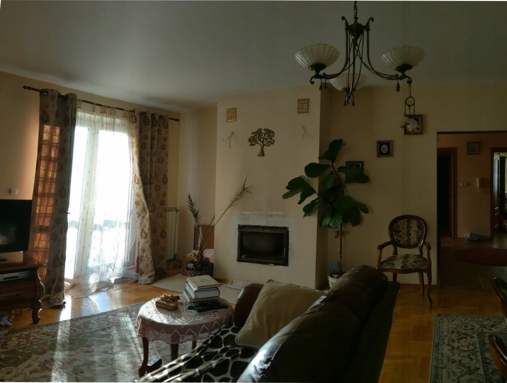 1. pokój dzienny- salon doświetlony od wschodu i południa z kominkiem (odprowadzenie spalin przewodem ceramicznym uzbrojonym rurą ze stali kwasoodpornej),wyjście z salonu na nasłoneczniony, duży - 70m2 taras od strony południowej, pokryty płytkami ceramicznymi;