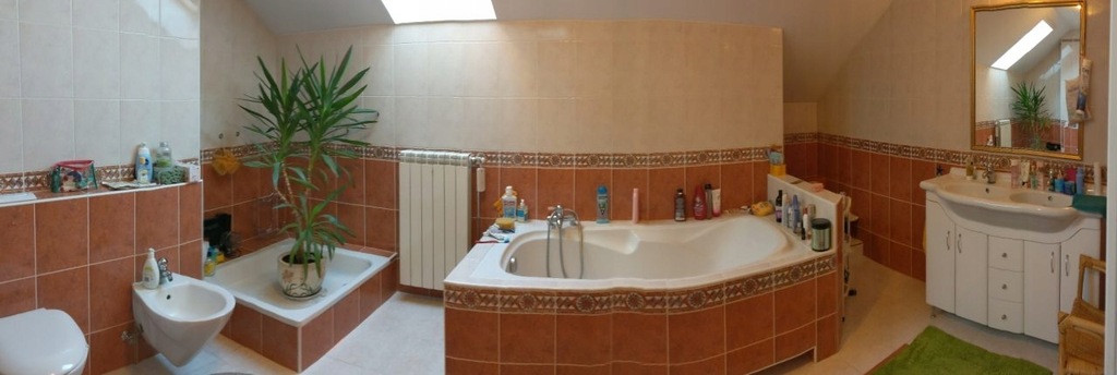 Na piętrze znajdują się trzy sypialnie, w tym jedna z garderobą i łazienką- osobny apartament; dodatkowo wygodna łazienka dostępna z korytarza z muszlą wc, bidetem, kabiną prysznicową i dużą wanną.