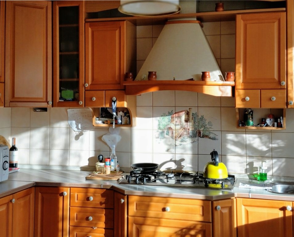 4. kuchnia z wyjściem balkonowym na taras i wydzielonym aneksem jadalnym i kredensem;