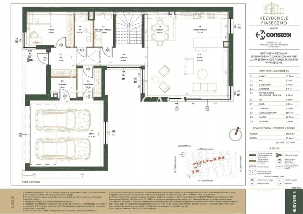 - exceptionally high standard of workmanship of the entire investment combined with unique architecture and high-quality materials (facade with natural stone elements, Wiśniowski garage doors, H/S windows in showrooms)