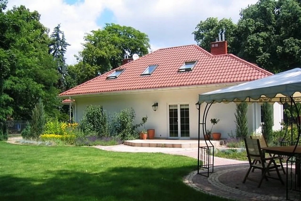 Piekna rezydencja połozona w zielonej, cichej i spokojnej okolicy. Dom wykończony w bardzo wysokim standardzie, dwa tarasy i balkon,na działce starodrzew, piękny i funkcjonalny ogród zaprojektowany przez profesjonalną firmę, automatyczne nawadnianie, oświetlenie zmierzchowe, wypielęgnowany trawnik kładziony z rolki. Ogrodzenie, brama automatycznie otwierana....polecam