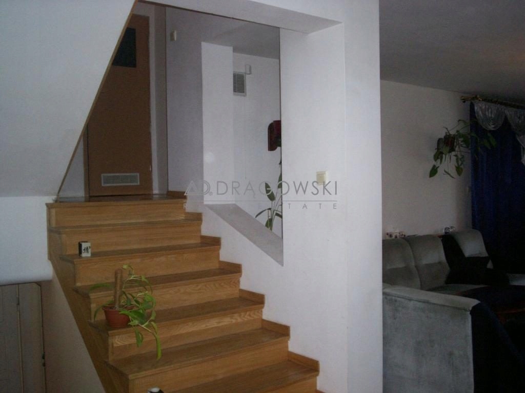 Segment w świetnej lokalizacji; b. blisko od przystanków autobusowych do W-wy, na tyłach zespołu marketów Auchan, a jednocześnie w środku osiedla, cisza. Technologia tradycyjna, trzy kondygnacje + poddasze ( 2 pokoje) w stanie do wykończenia. Dwie łazienki + trzecia do wykończenia. Powierzchnia użytkowa 247 m2 + taras(ok.12 m2)+ ogródek. Do lokalu przynależy piwnica, pralnia i pomieszczenie gospodarcze, oraz działka gruntu o powierzchni 271 m2/ własnościowe prawo do lokalu ( segmentu).Okna wymienione na plastikowe, szyby antywłamaniowe. Stan dobry, zadbany, tradycyjny. Ogólnie do odświeżenia i wykończenia poddasza. Tynki z gładzią gipsową, malowane farbą zmywalną. W pobliżu pełna infrastruktura łącznie ze szkołą, basenem i licznymi sklepami.