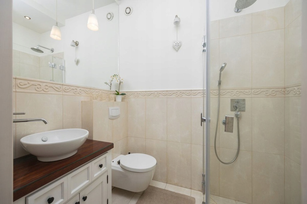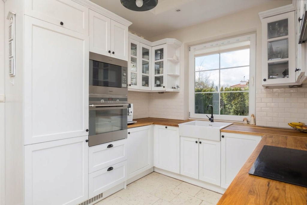Nie można również pominąć estetycznych i funkcjonalnych elementów zewnętrznych. Ściany zewnętrzne murowane z pustaków ceramicznych, izolowane styropianem, oraz energooszczędne okna PCV gwarantują doskonałą izolację termiczną, co przekłada się na oszczędność energii i komfort mieszkania. Brama garażowa i wjazdowa z osprzętem firmy NICE oraz ogród zaprojektowany przez architekta krajobrazu to dodatkowe atuty, które sprawiają, że ta nieruchomość jest niezwykle atrakcyjna.