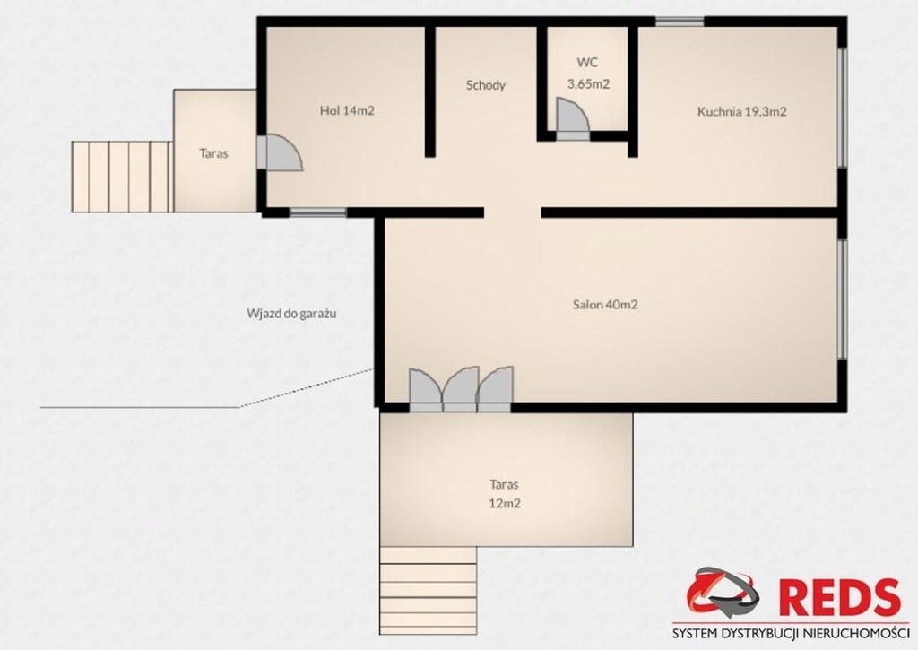 -dużego salonu z wyjściem na taras