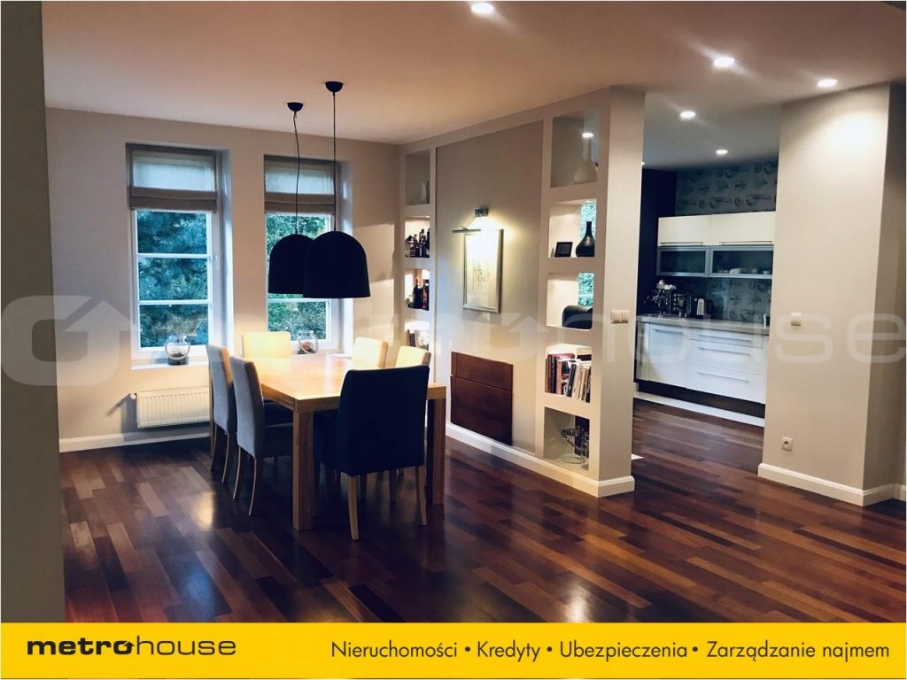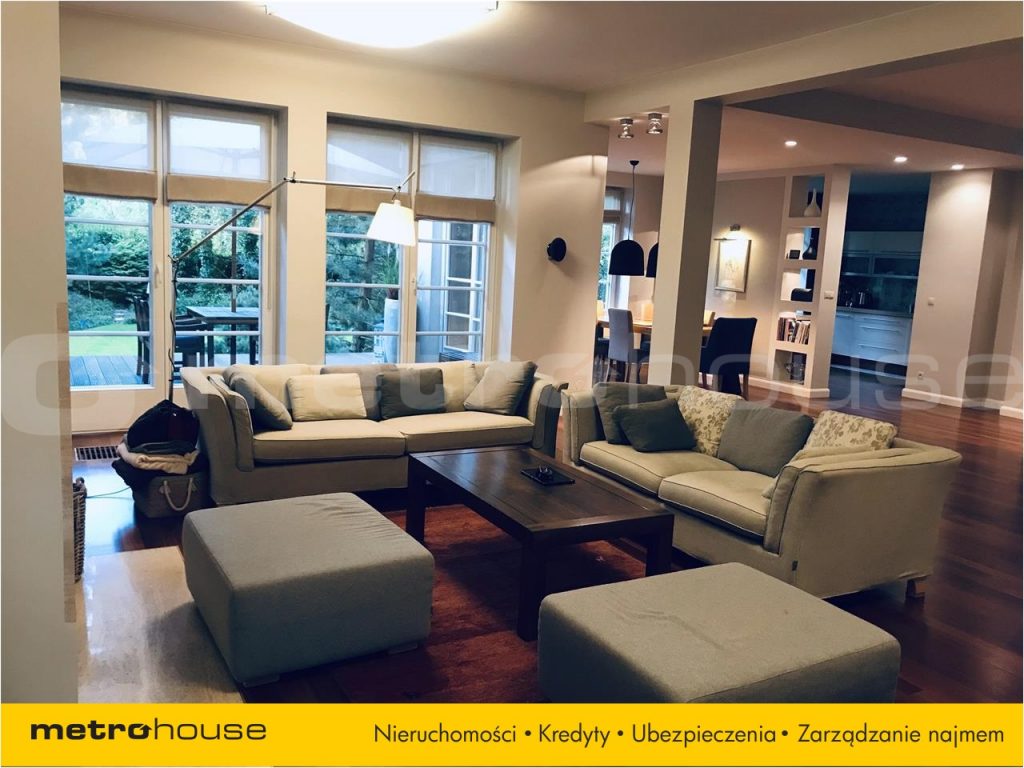Dom położony na działce 1400 m2 w cichej, spokojnej i co najważniejsze zielonej okolicy Piaseczna. Wejście do domu zwieńcza przeszklony wiatrołap z miejscem na okrycie wierzchnie przez który docieramy do otwartej, świetnie doświetlonej przestrzeni z wytyczonym salonem (37 m2) z dużą strefą wypoczynkową, jadalnią (15 m2) i kuchnią ze spiżarnią (14,5 m2) oraz schodami prowadzącymi na piętro. Na parterze znajduje się także łazienka z prysznicem i sauną, kotłownia z ekonomicznym piecem gazowym i pralko-suszarką oraz przejście do garażu (garaż na 2 samochody). Na piętrze znajdują się dwie bliźniacze sypialnie (20 m2). Główna sypialnia z balkonem, połączona jest z prywatną łazienką z prysznicem. Duża łazienka z dwoma umywalkami, prysznicem i ogromną wanną, z której rozpościera się widok na zieleń przez podwójne, wysokie okno. Nad garażem znajduje się przestronna garderoba z drewnianą zabudową do samego sufitu oraz duży pokój o loftowym klimacie.