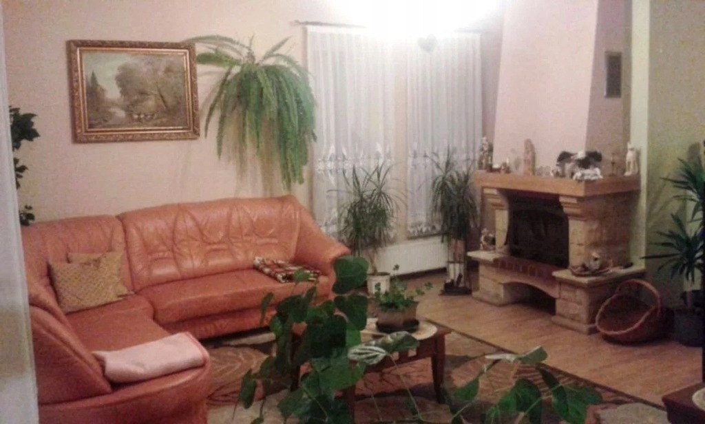 Dom bardzo dobrze zaprojektowany indywidualnie pod dzialke. Wokół domu piękny ogrod z warzywniakiem.Rozklad przyjazny dla mieszkancow. Na parterze nowoczesna kuchnia ze spizarnia. Jadalnia polaczona z Salonem. ( Kominek- rozprowadzenie cieplego powietrza na pietro).Do tego Gabinet i Łazienka. Dodatkowo pokoj bedacy obecnie garderoba.Pomieszczenie pod schodami plus pomieszczenie przez które przechodzi się do 2 stanowiskowego Garazu. Na piętrze duza Sypialnia polaczona przez garderobę z Łazienka . Dodatkowo 2 Sypialnie i Łazienka. Plus duże pomieszczenie nad garażem( ok.34 m) do którego przechodzi się przez łazienke. Cicha okolica, sąsiedztwo domow wolnostojących., Blisko ( w promieniu 500-1000 m) szkola podst. gimnazjum, ośrodek zdrowia, apteka.stacja benzynowa.W poblizu 2 sklepy ogolnospozywcze.
