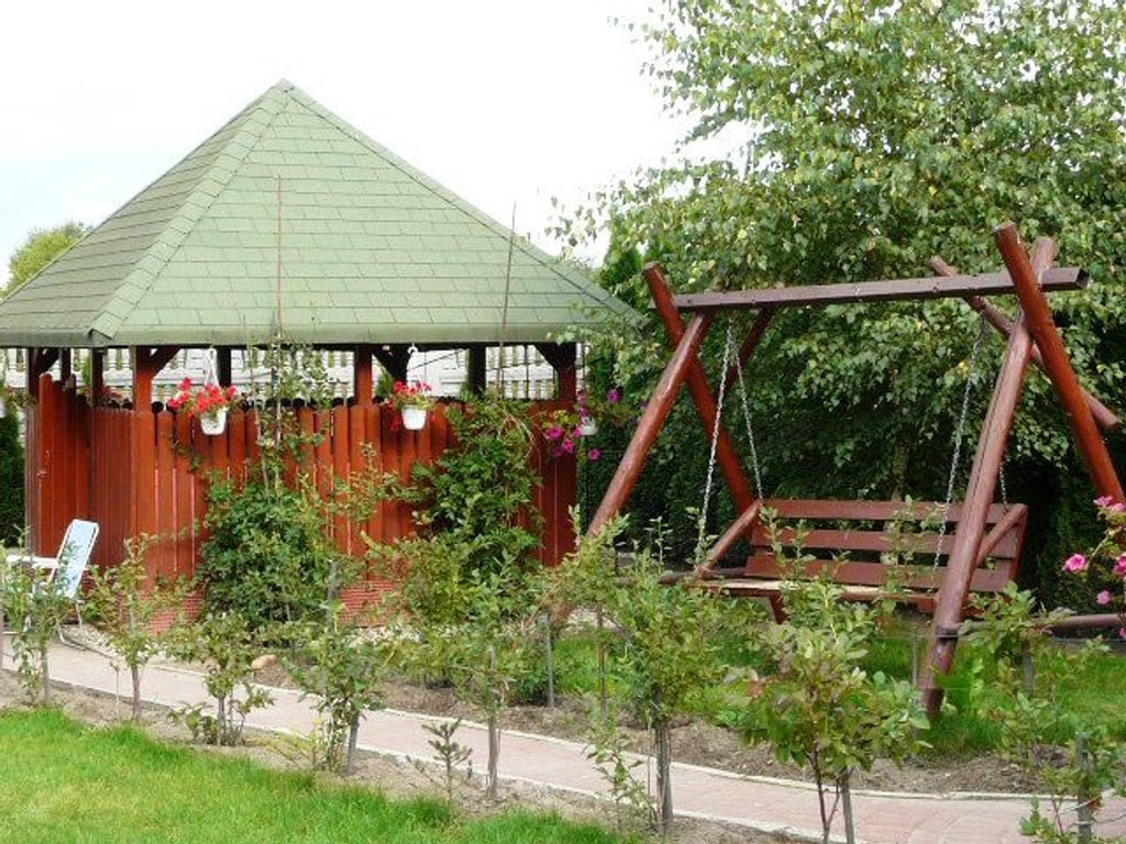 Działka ogrodzona zagospodarowana z altaną ,oczkiem wodnym , oraz licznymi nasadzeniami .