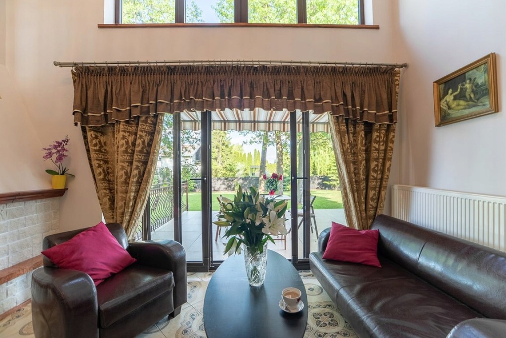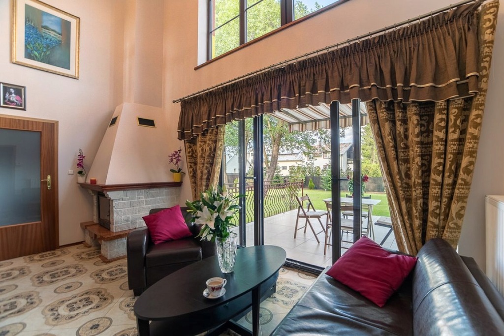 Wysokie pomieszczenia, panoramiczne okna, kominek, wysoki standard wykończenia naturalnymi materiałami sprawi, że zakochasz się w tym miejscu.