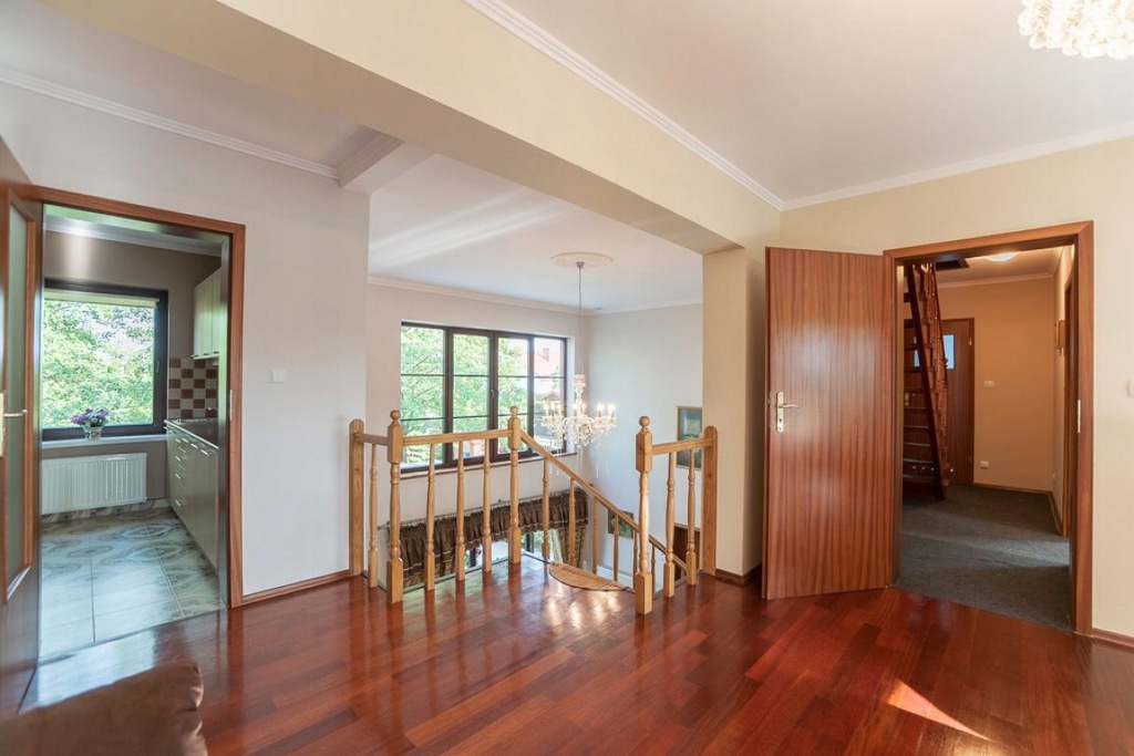 Działka o powierzchni 1.198 m2 na której został postawiony dom o powierzchni 285m2 znajduje się w pięknej oraz kameralnej okolicy. Dla bezpieczeństwa dom został wyosażony w monitoring.