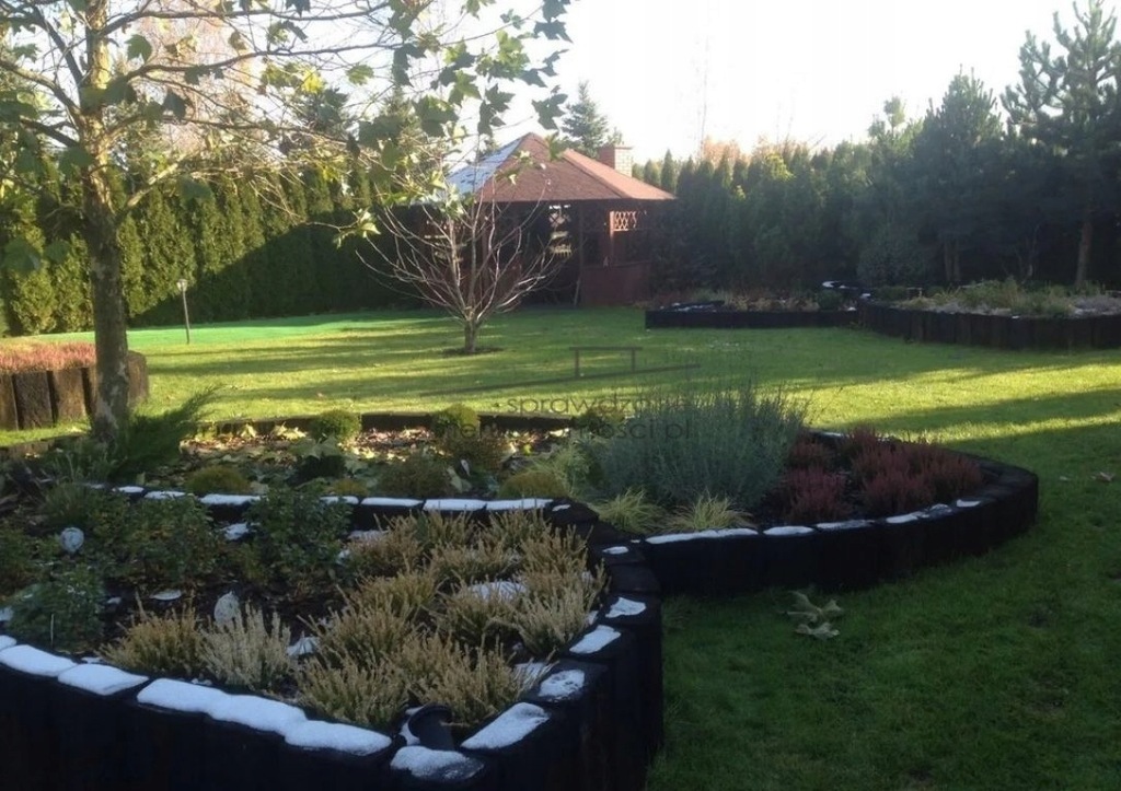 Dookoła domu żywopłot z 12-letnich tuj szmaragd, kilka kompozycji klombów.